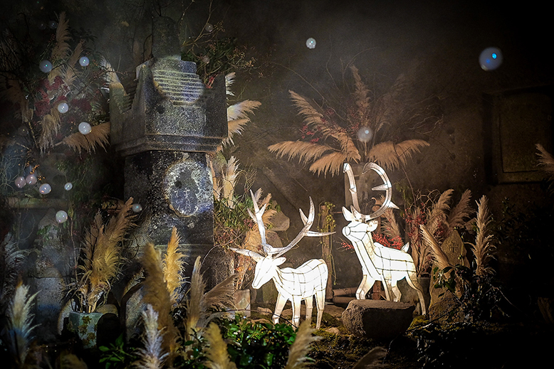 ひっそりとした静寂な闇の世界に、色づきはじめた紅き立つ幻想的な風景。神々しい松島の月に導かれ、秋の夜長を楽しみにお越しください。